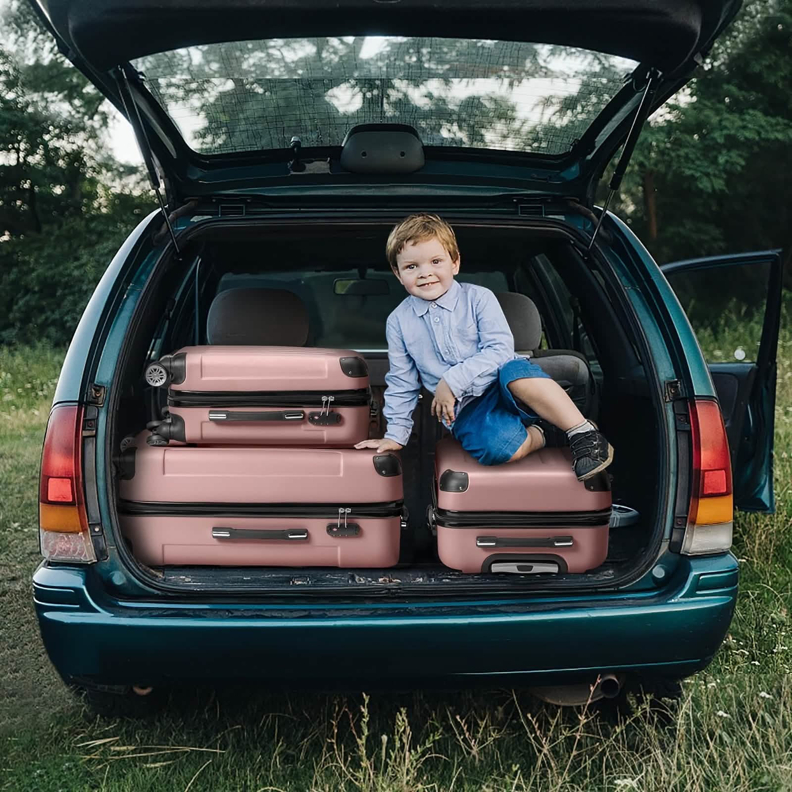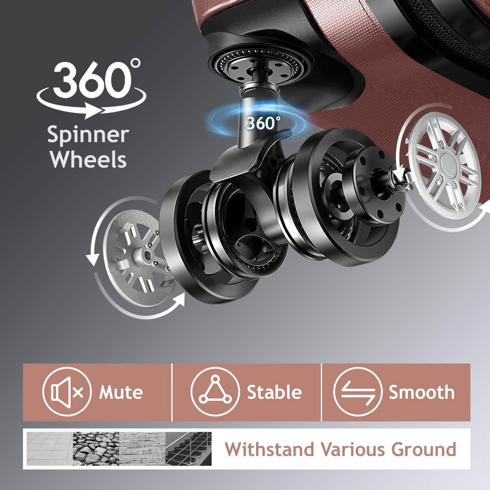 The lightweight hybrid ABS shell and aluminum alloy telescopic handles make maneuvering effortless, while 360° spinner wheels ensure smooth rolling in any direction. Each piece includes a TSA-approved combination lock for secure travel. Available in White, Black, and Rose, these suitcases are perfect for family vacations, business trips, or long journeys.